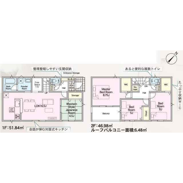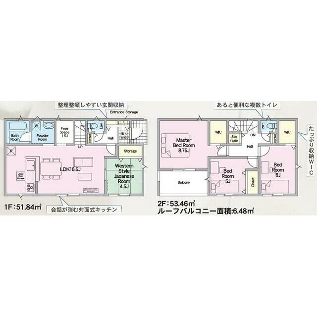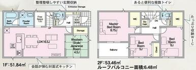 号棟番号:2号棟 ーフバルコニー約6.48平米有り 駐車場2台(車種による) |