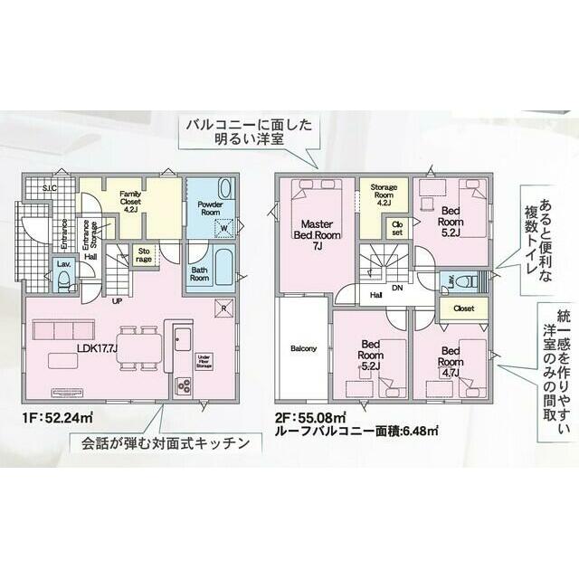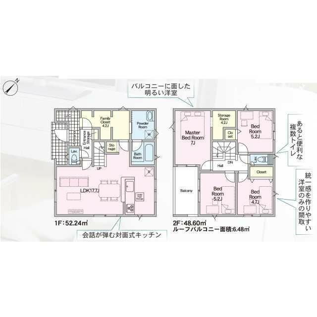 号棟番号:5号棟 ーフバルコニー約6.48平米有り 駐車場2台(車種による) |